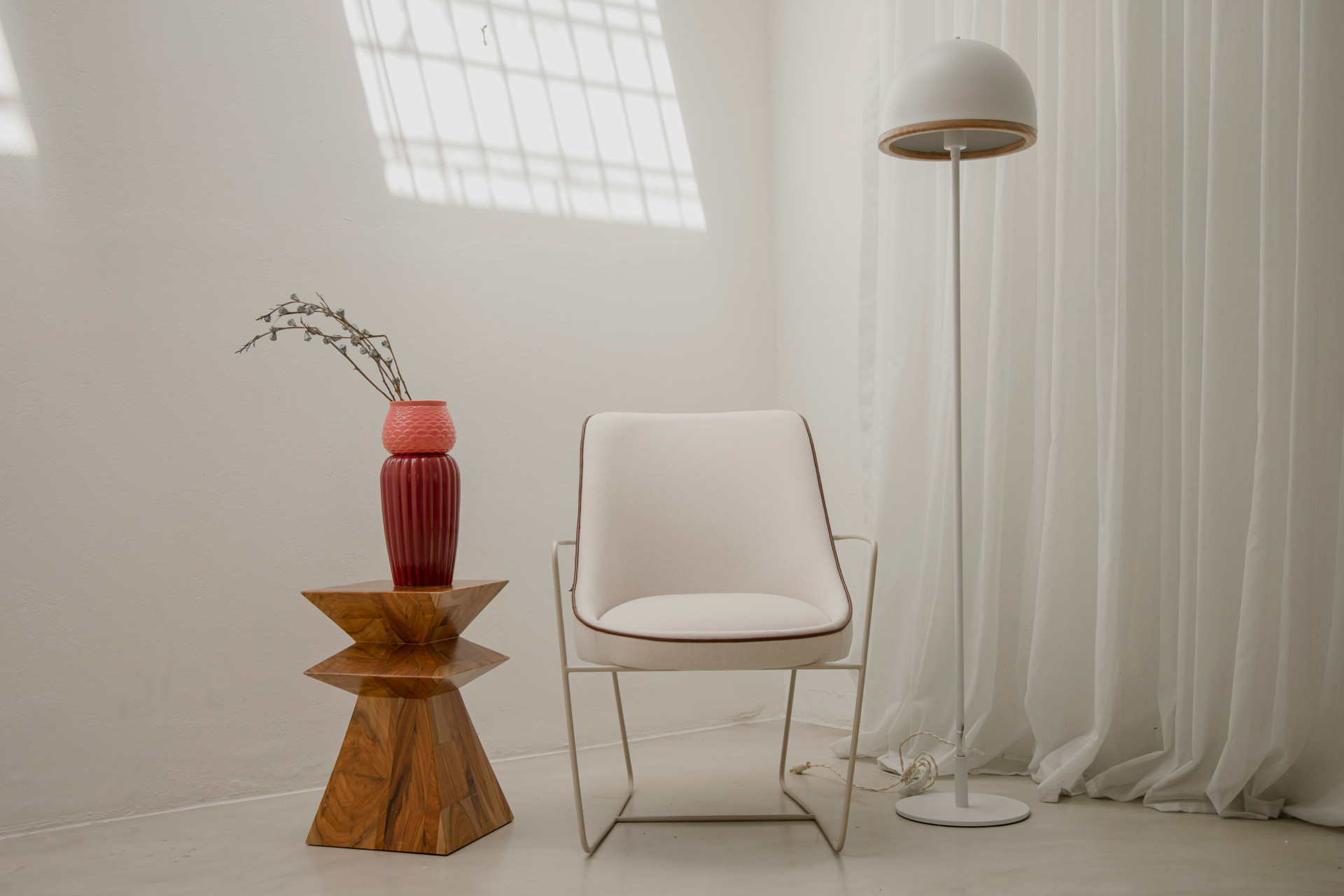 - Placer en lille spot bag en plante for at skabe silhuet og dybde.